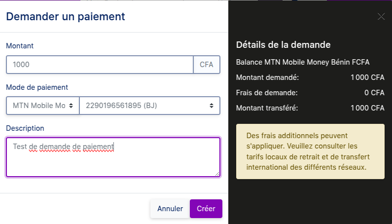 - ✅ Amount (between 1,000 and 500,000 XOF)